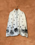 Zip front jacket, welt pockets. All over cat print. Unlined.