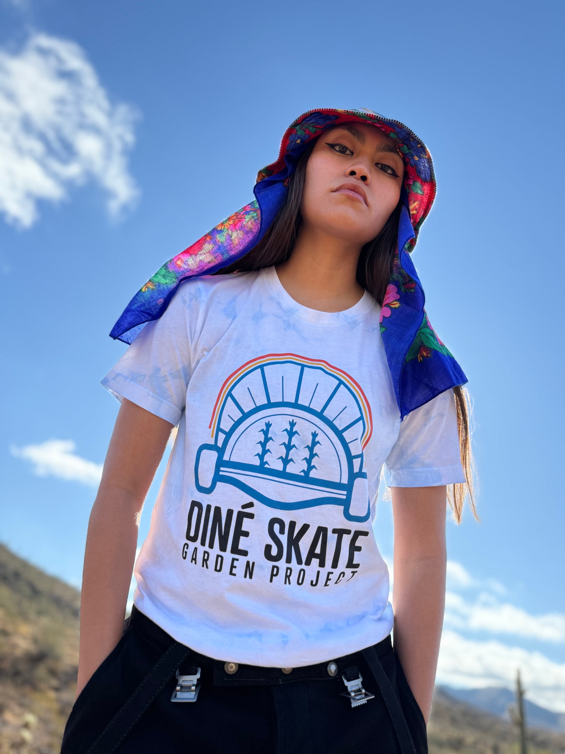 SPREAD LOVE + SHINE LIGHT 100% of Proceeds from this sale go to the Diné Skate Garden Project on the Navajo Reservation. This stunning artwork by Diné artist Vernon Kee.