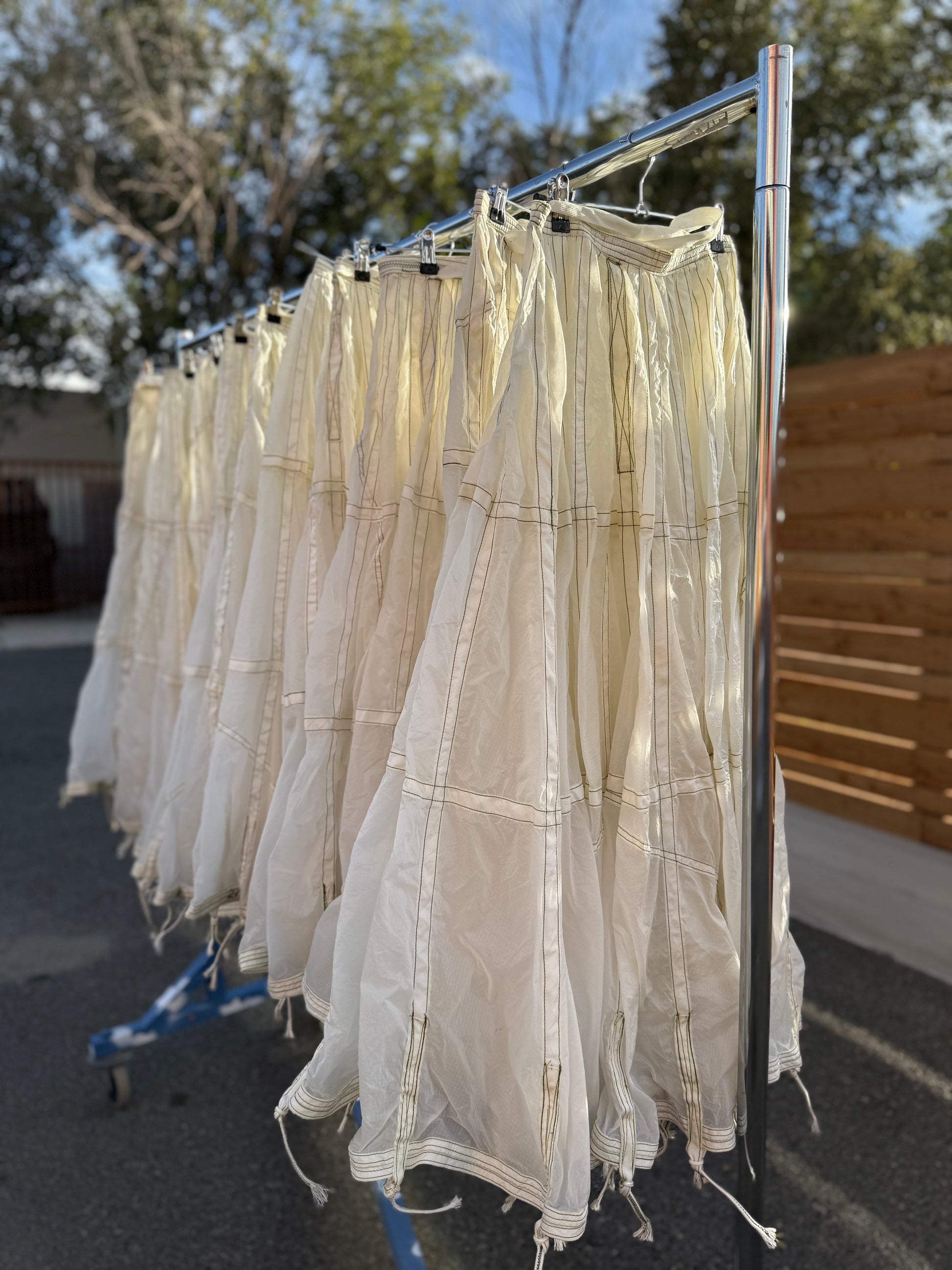 Our upcycled vintage parachute skirts are available for pre-order, and shipping mid-October!