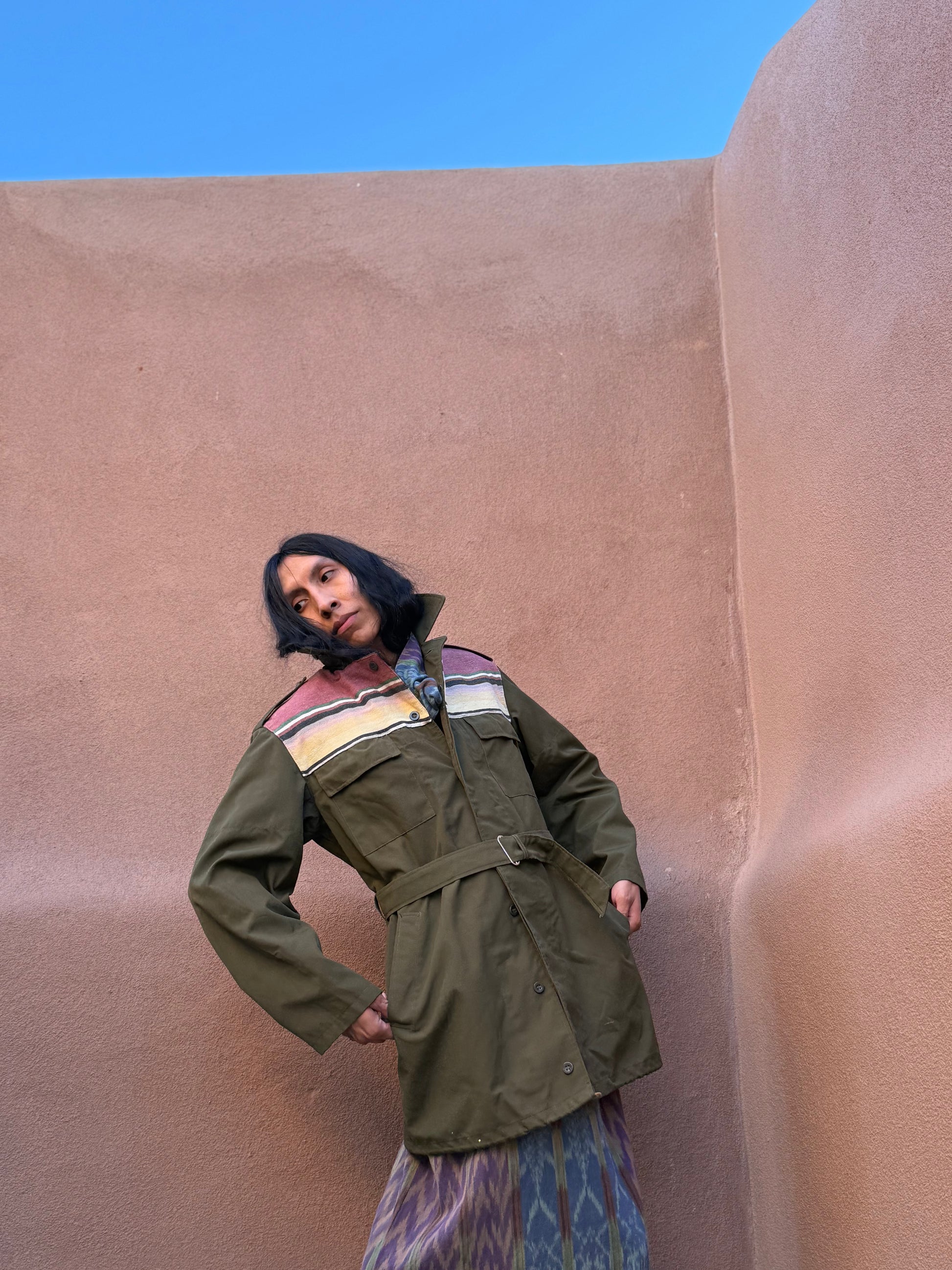 A classic reimagined — this one-of-a-kind military field jacket has been revived with midcentury wool blanket detailing, bringing warmth, texture, and heritage craftsmanship to utilitarian design.