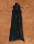 Crafted in rich, soft velvet, this heirloom garment honors the original maker’s craftsmanship while carrying a contemporary Indigenous message forward. Tailored yet easy, generous side slits for movement, and a structured collar that frames the neckline with intention.