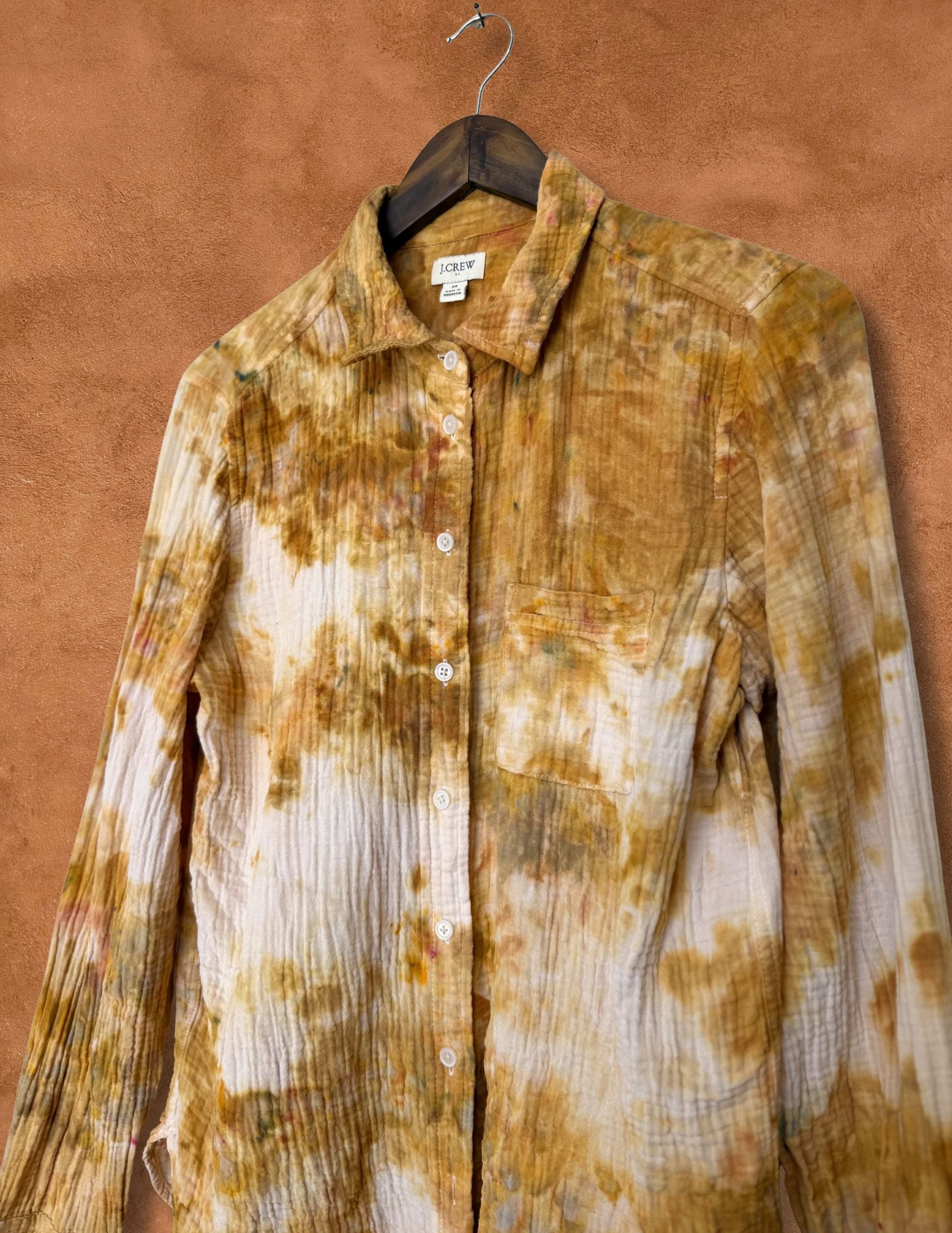 Preloved and preworn. Lovingly dyed under the blue skies of New Mexico in warm, sun-washed desert tones—each piece carrying natural variation from the dye process.