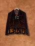 A beautifully preserved 1950s velvet top transformed through hand reverse-dye to reveal a striking LAND BACK message across the front and back.