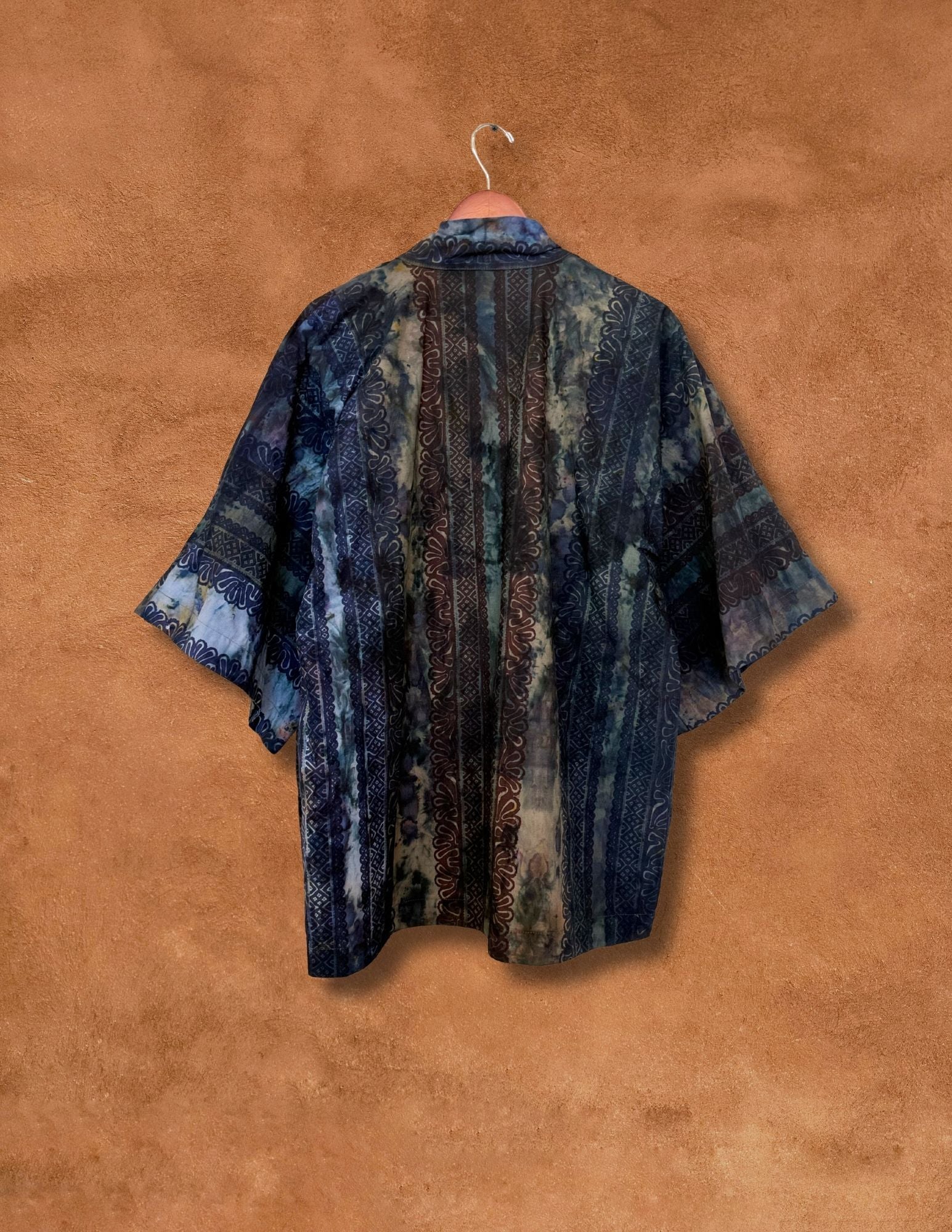 Made from vintage midcentury Marimekko fabric, this piece has been reimagined through our hand-dye process in Santa Fe, creating a one-of-a-kind pattern rich with depth, texture, and history.