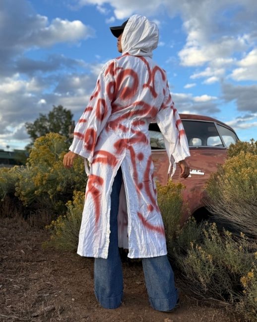 Hand-painted by Ben Nelson (The Son of Picasso), a federally recognized Kiowa artist with Diné, Taos Pueblo, and Delaware heritage, this one-of-a-kind hoodie merges fine art, graffiti, and streetwear into a powerful statement of Indigenous expression.