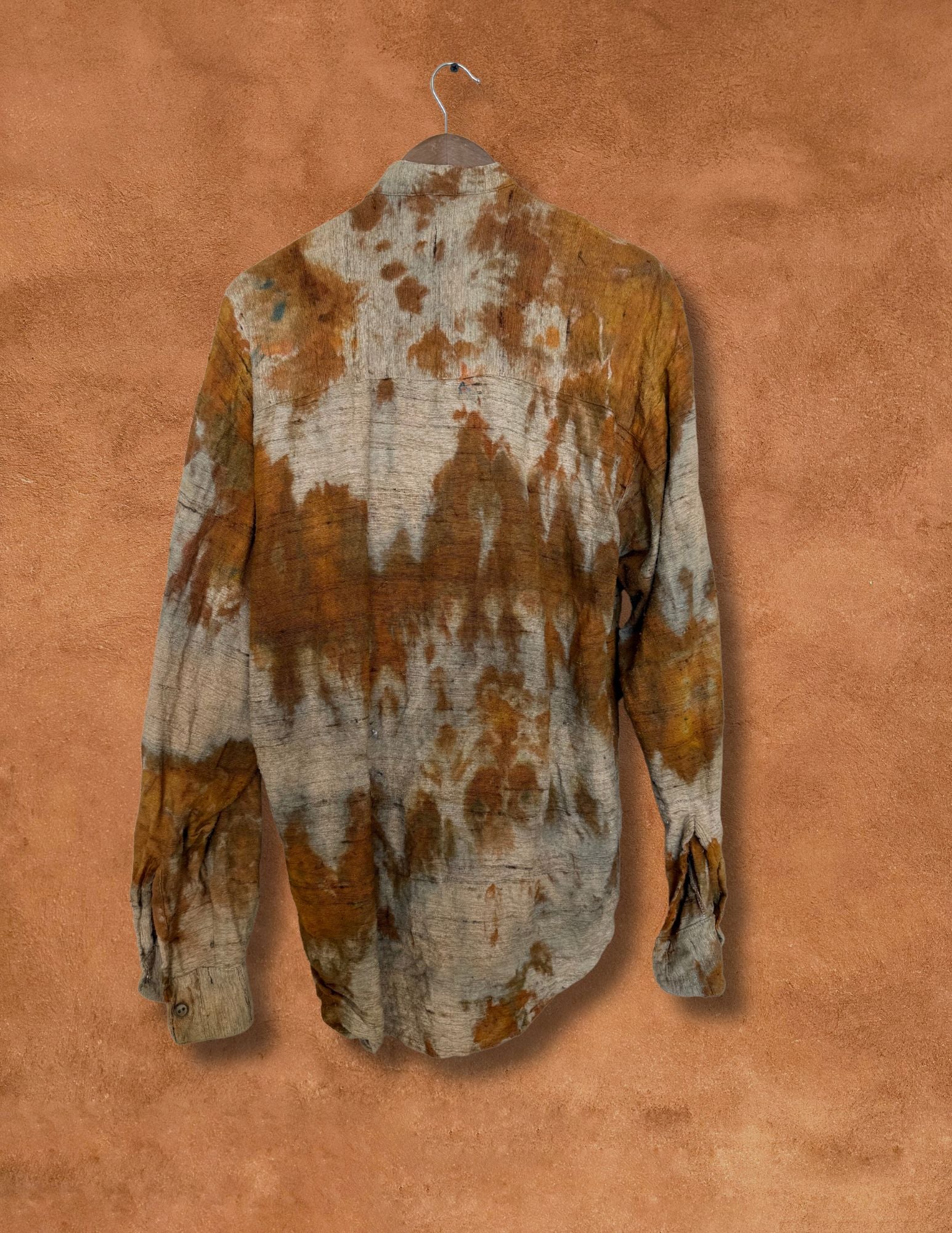 An elevated take on classic tailoring — this vintage raw silk shirt has been transformed through our hand-dye process inspired by the desert’s shifting light and earthen tones.