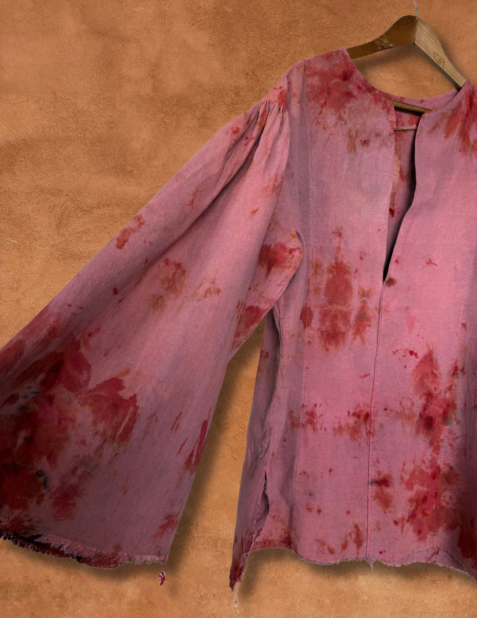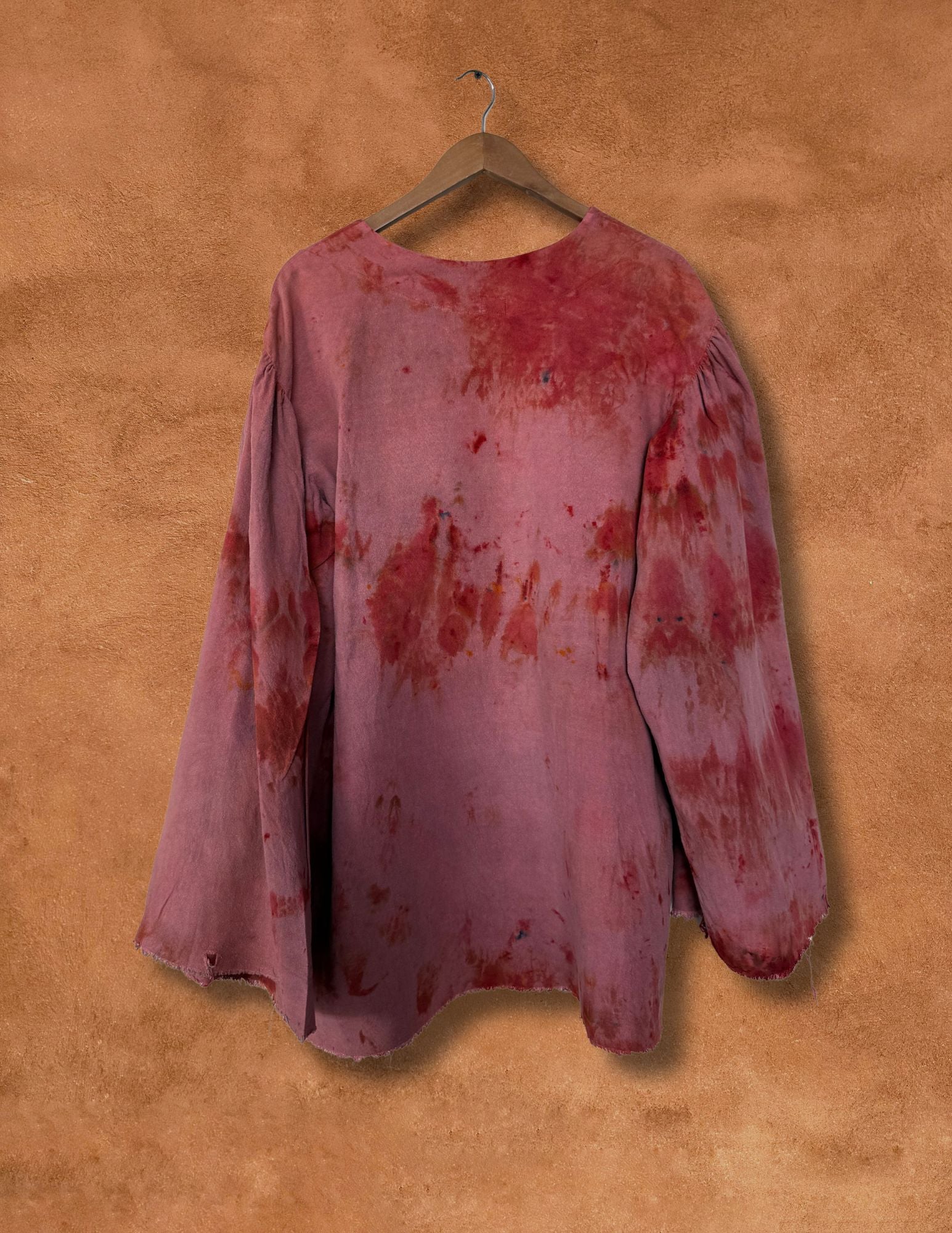 A sculptural silhouette reimagined through our hand-dye process — each piece evokes the quiet strength of desert landscapes and the shifting hues of monsoon light. Crafted from raw silk with soft structure and natural drape, this one-of-a-kind shirt flows effortlessly between artwear and everyday ritual.
