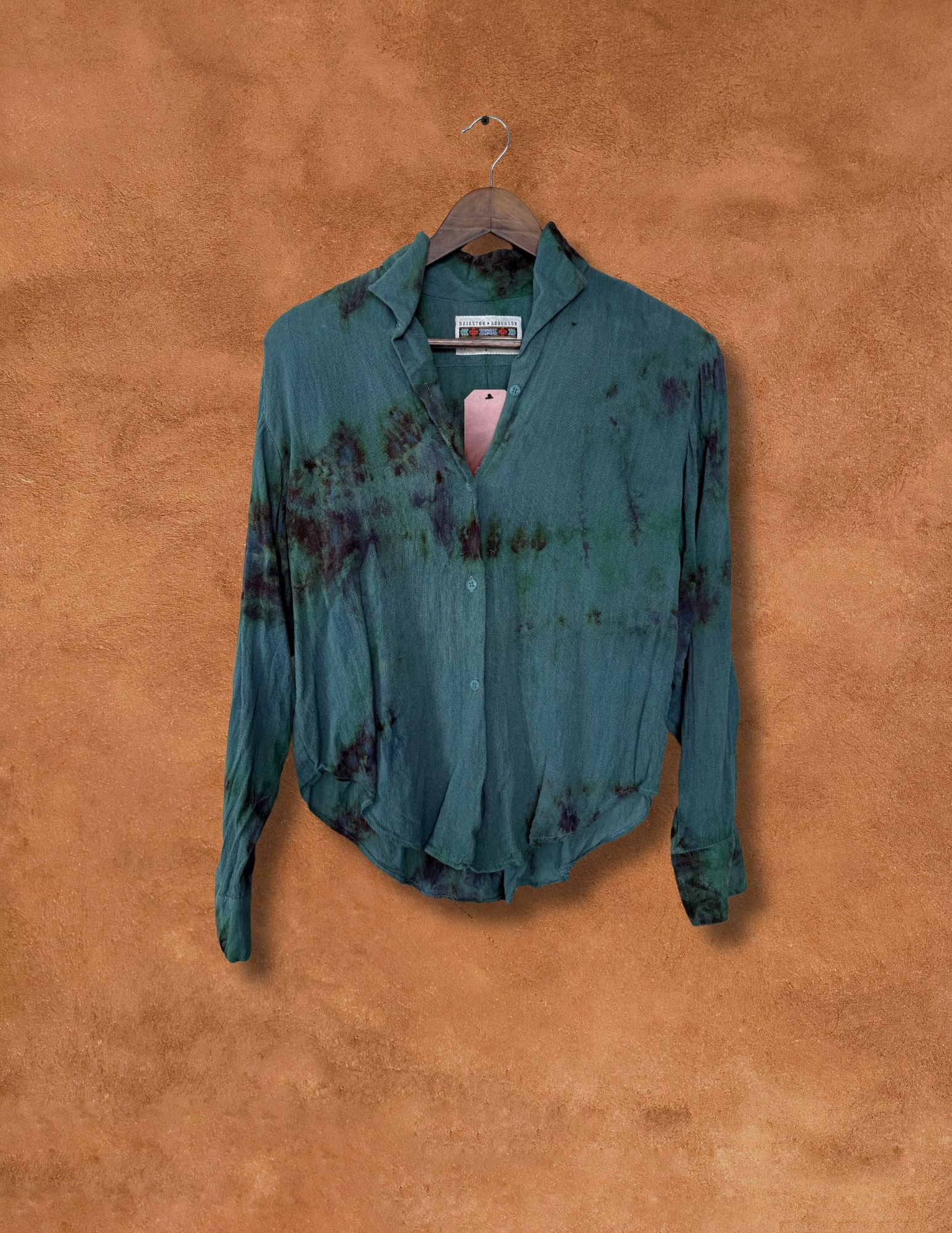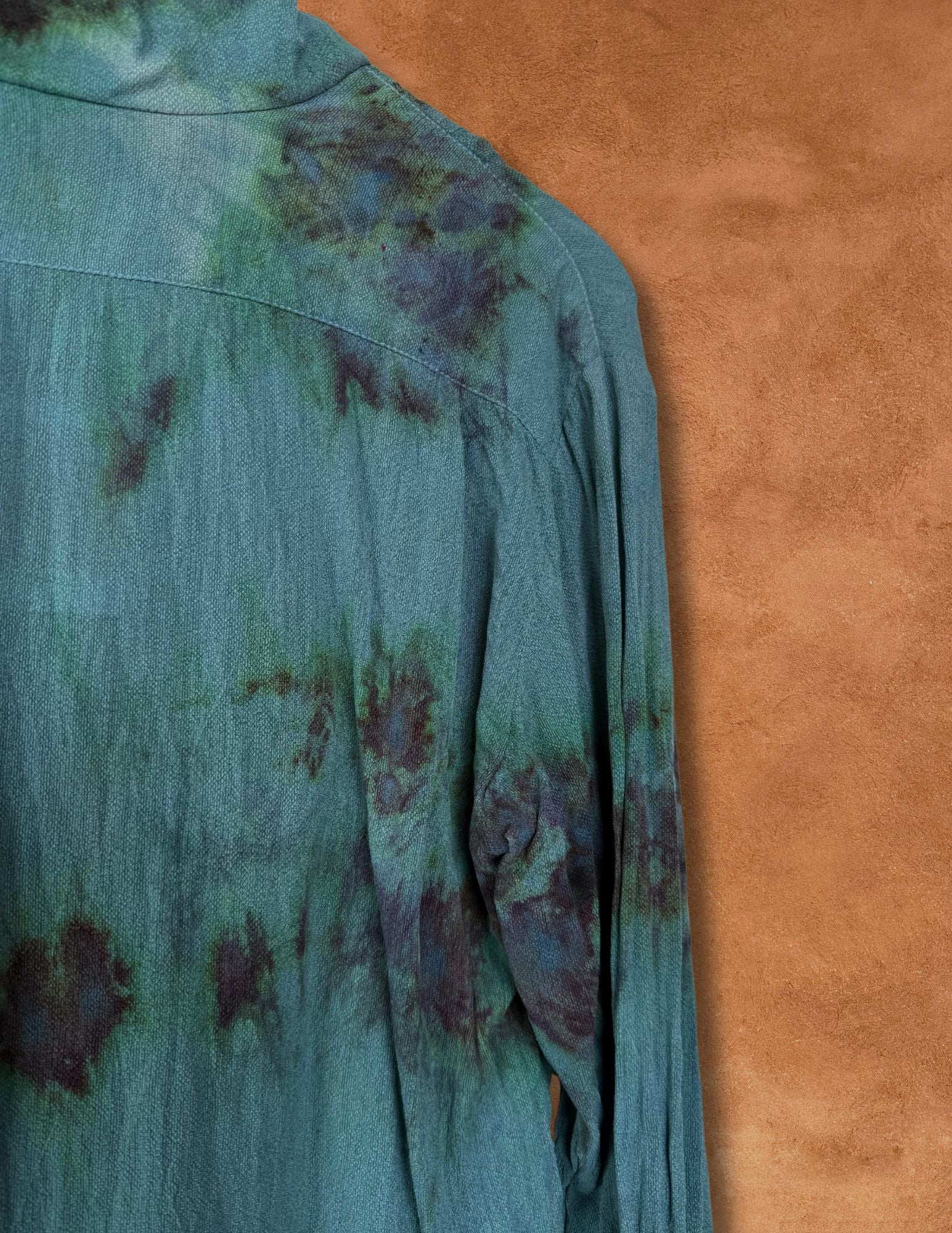Hand-dyed in New Mexico, this vintage rayon set captures the spirit of the desert — meets the earthy artistry of our dye process, creating a matching shirt and skirt that celebrate Western heritage through a contemporary lens.