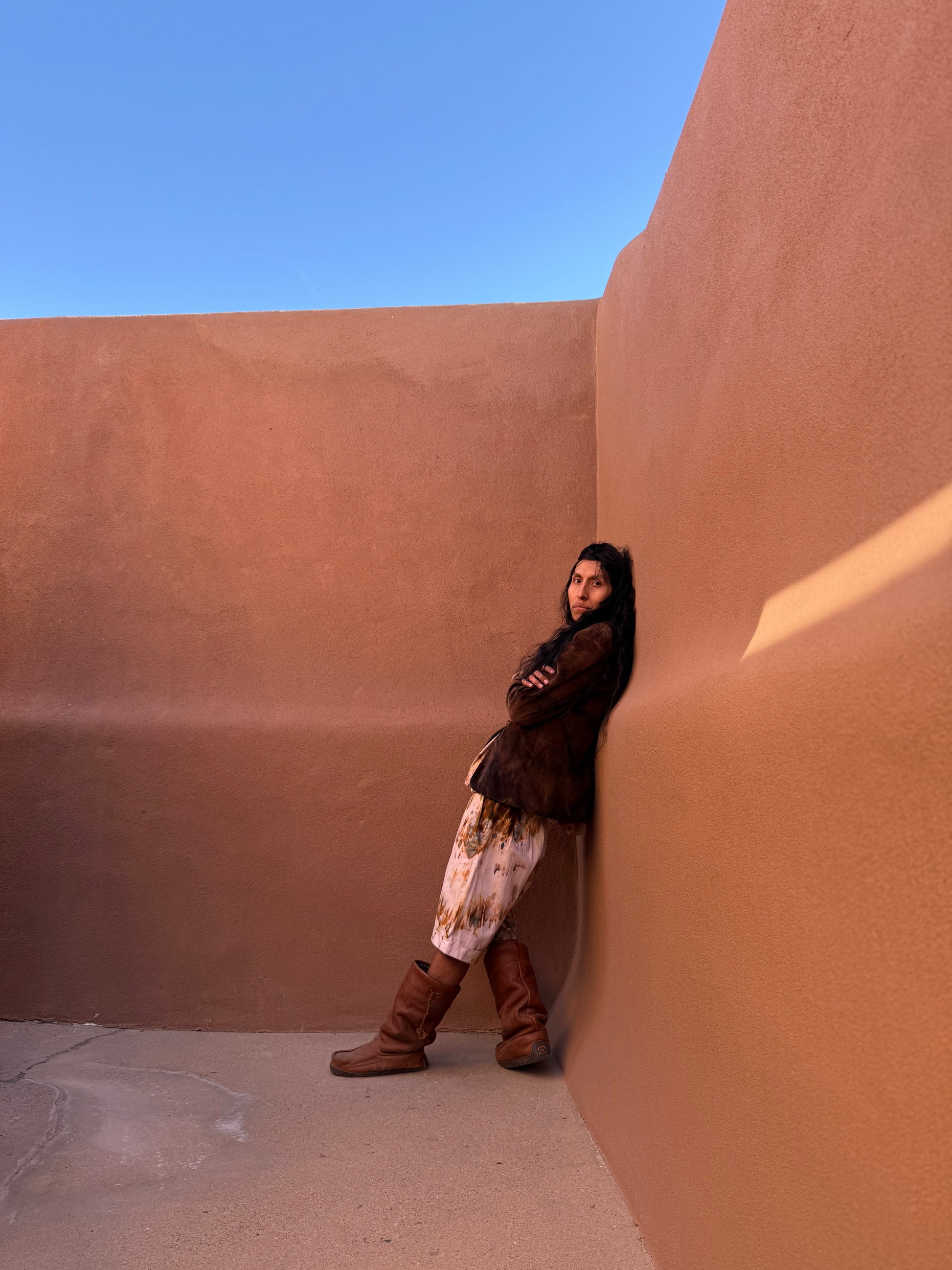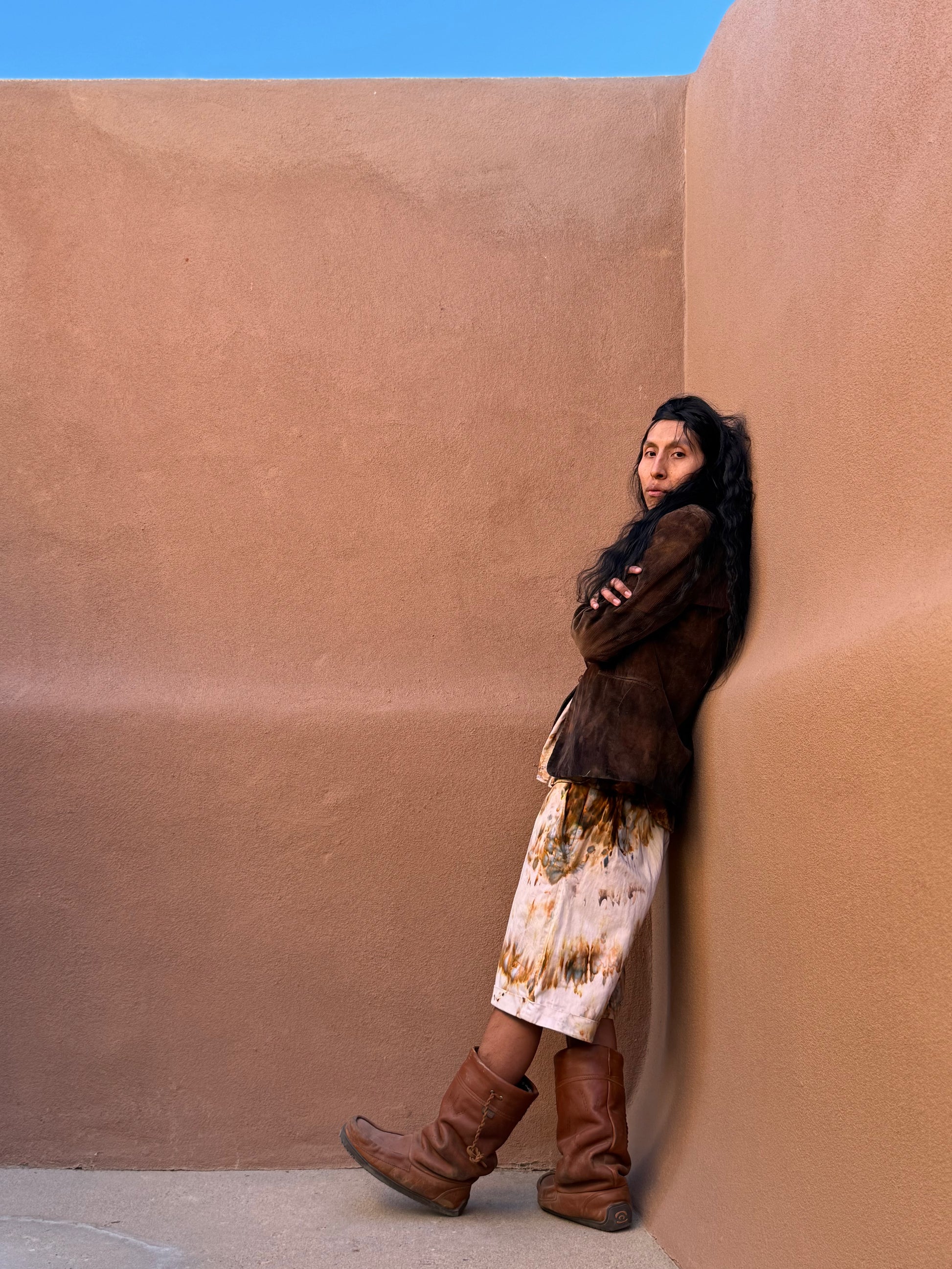 Preloved and preworn. Lovingly dyed under the blue skies of New Mexico, finished in a rich sienna patina that gives this piece its depth and character.