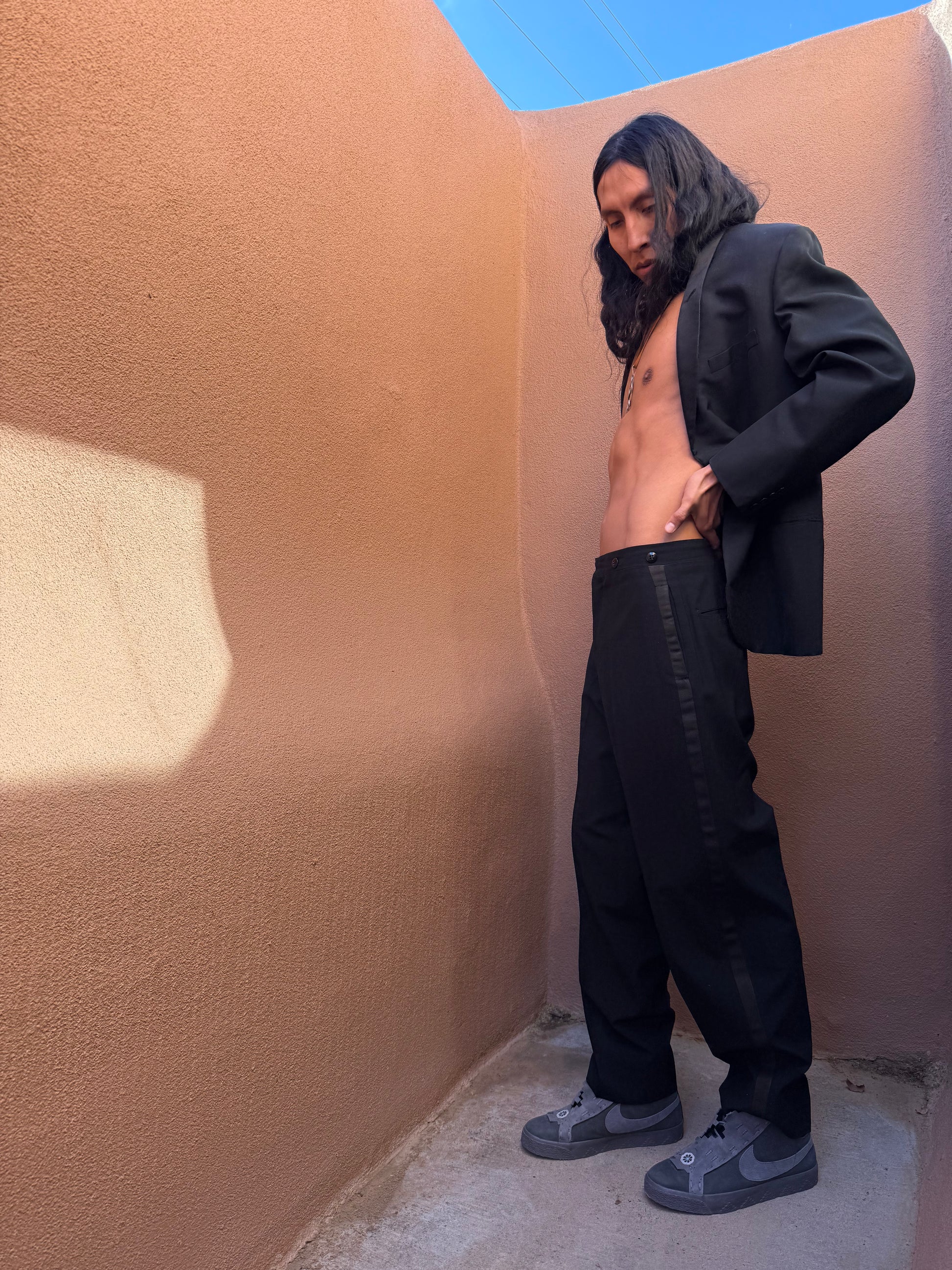 Tailored with precision and reawakened with intention, this Sinatra-era wool blend tuxedo is a collector’s piece layered in history, artistry, and spirit.