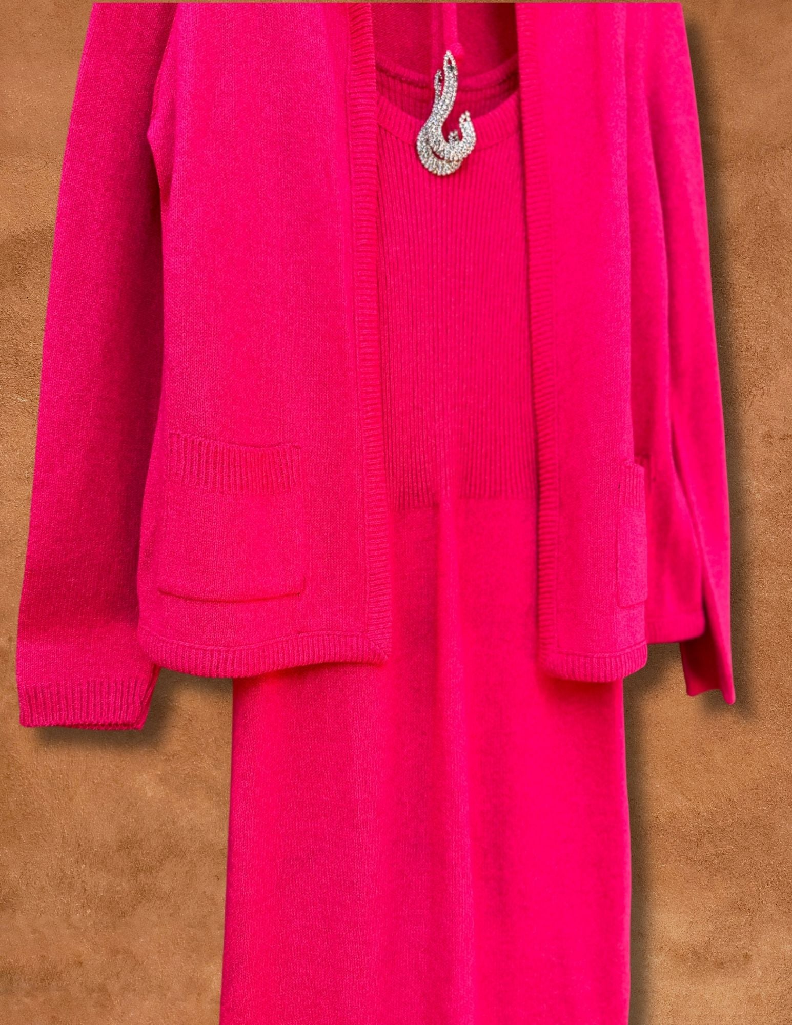 Matching Knit Jacket, boxy cut, front pockets.