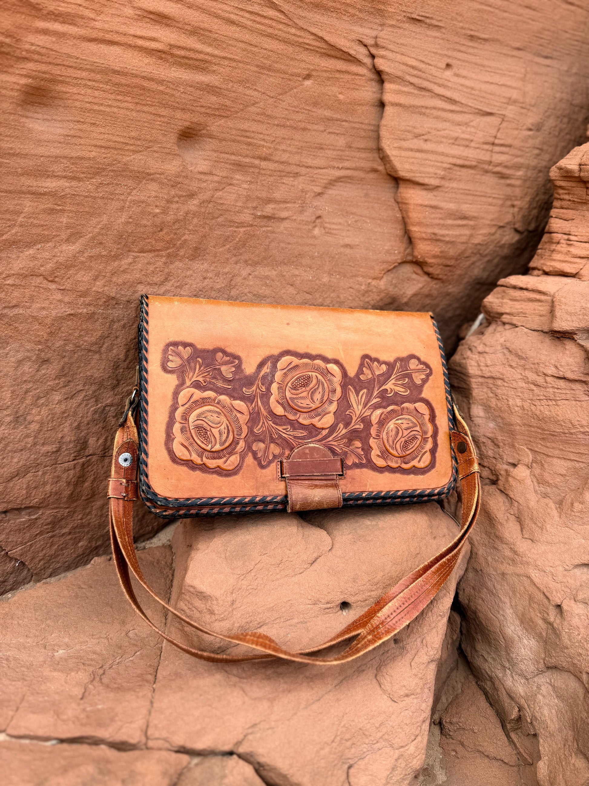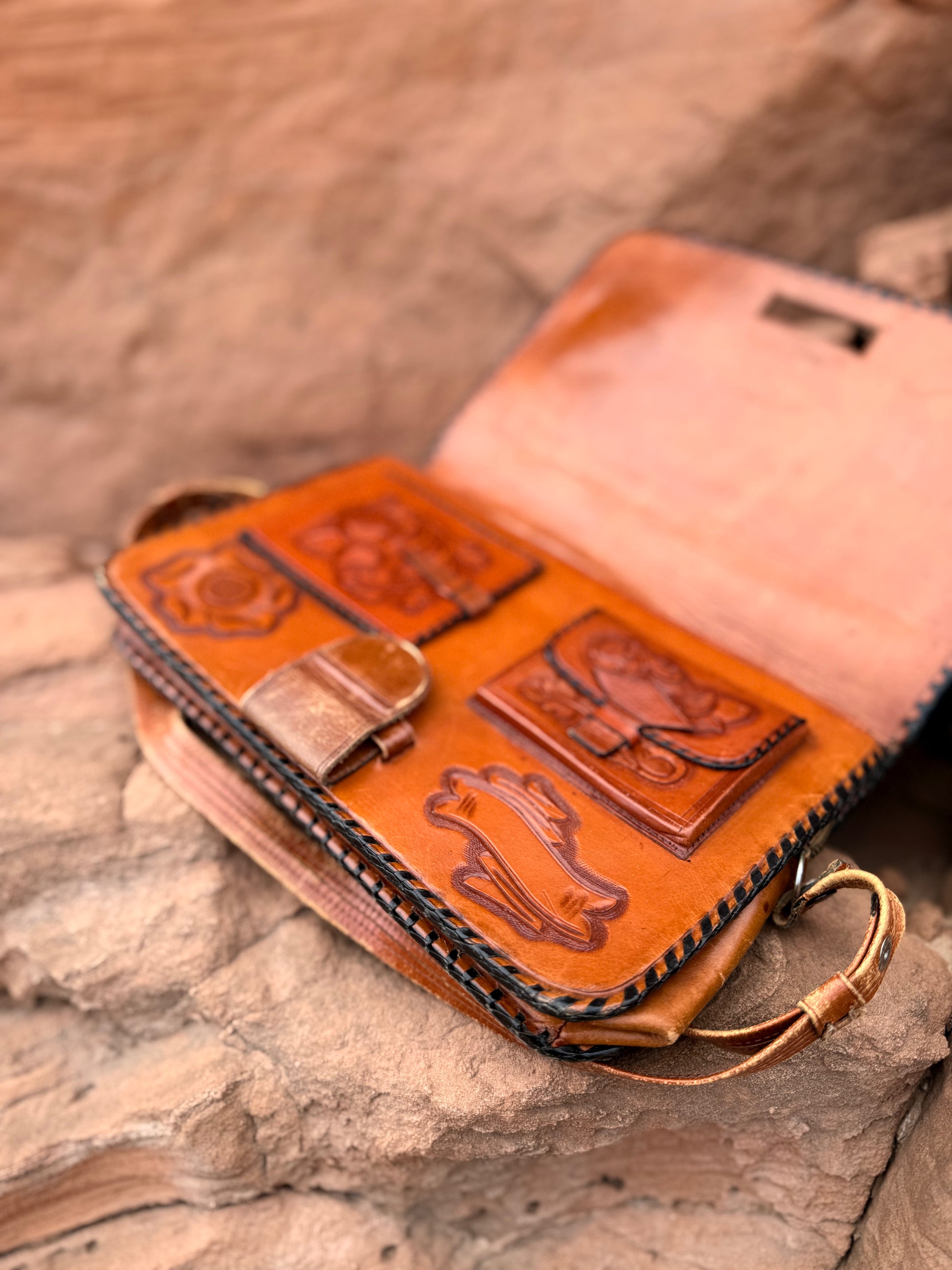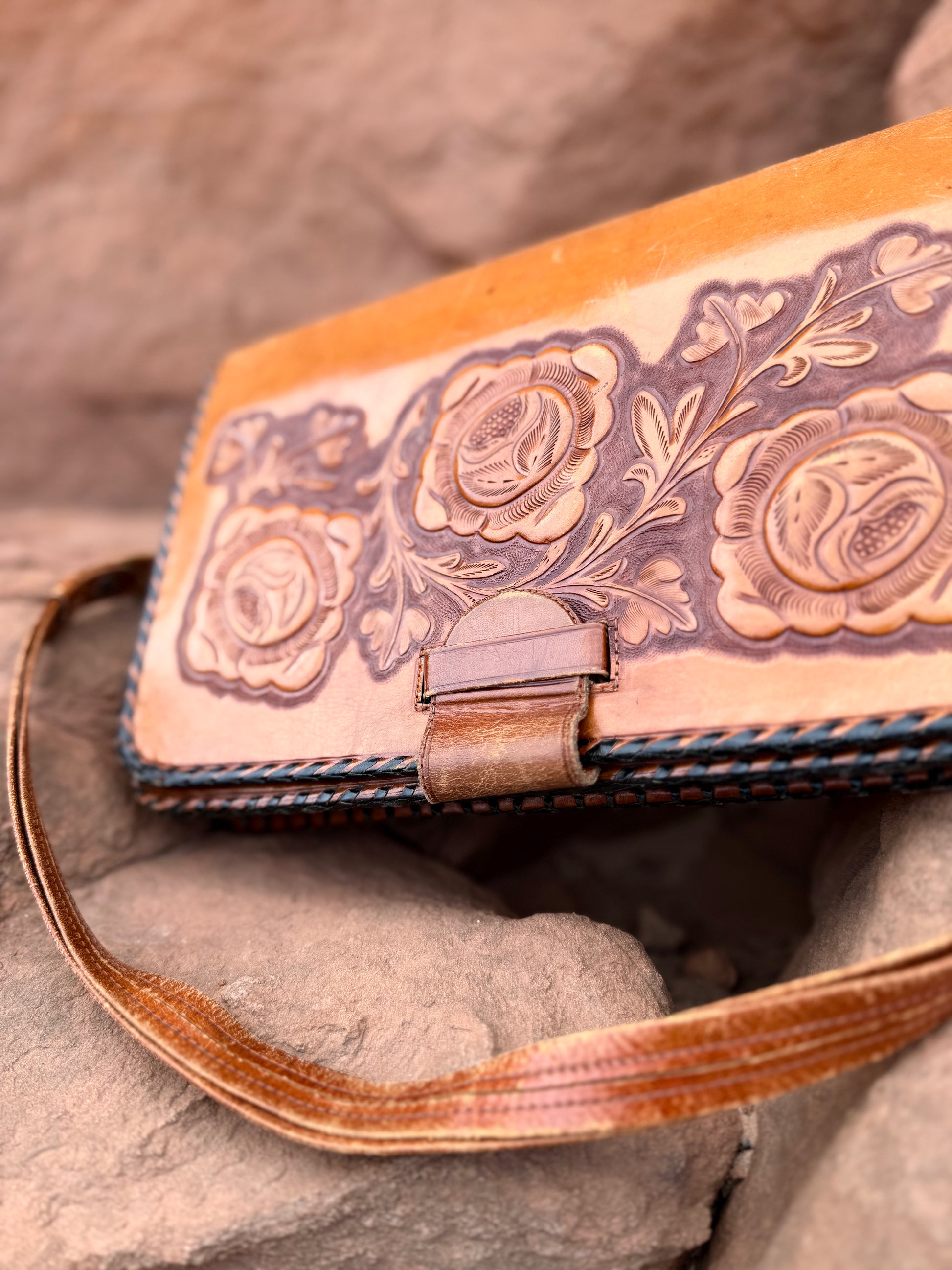Preloved vintage item, this handcrafted tooled leather purse is a treasure.