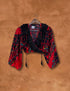 A bold, flirty piece from the 1980s — this vintage cropped blouse brings playful drama with its ruffled collar, crossover front, and voluminous sleeves.