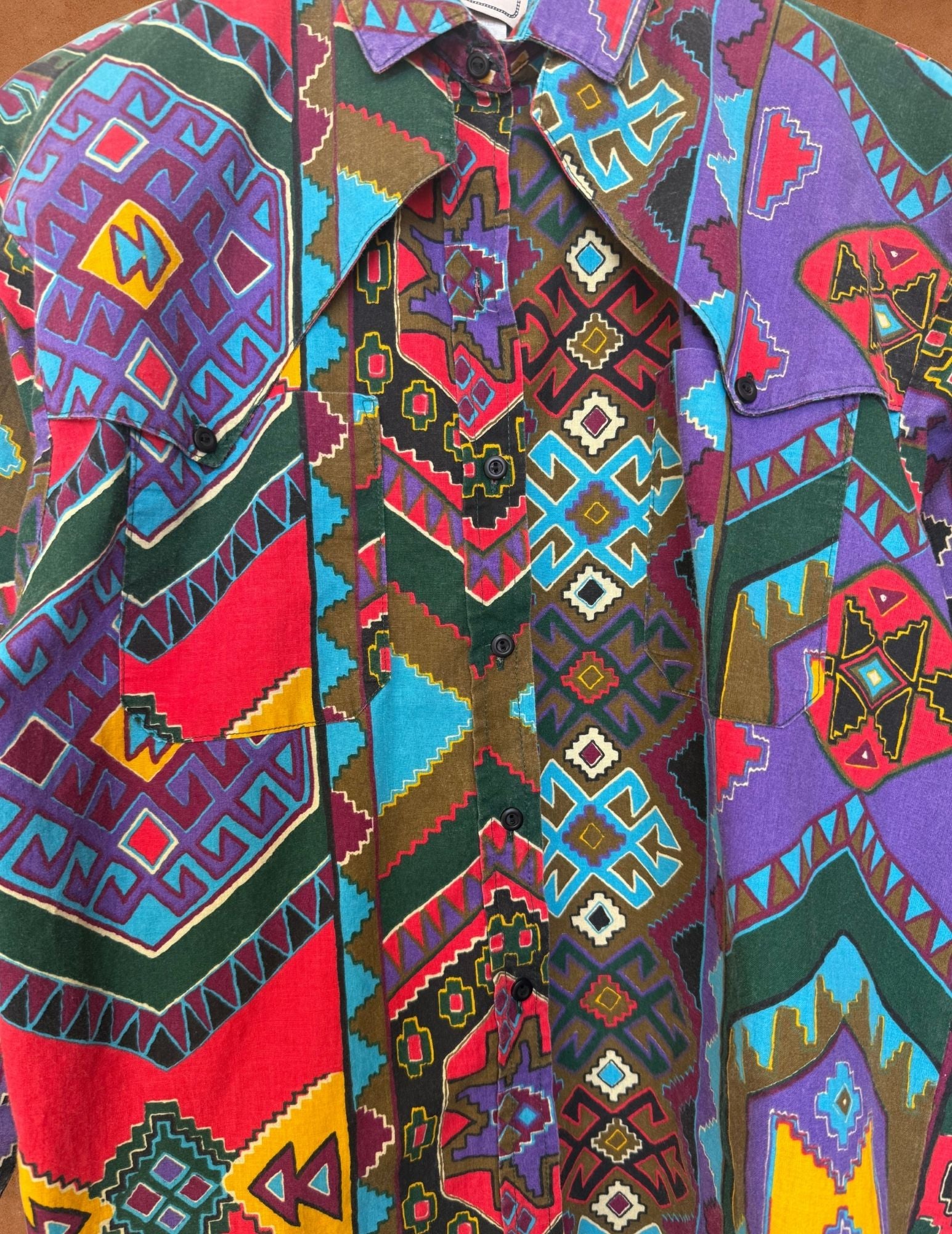 🔥 Vintage Southwest Rodeo Shirt — Bold Desert Geometrics