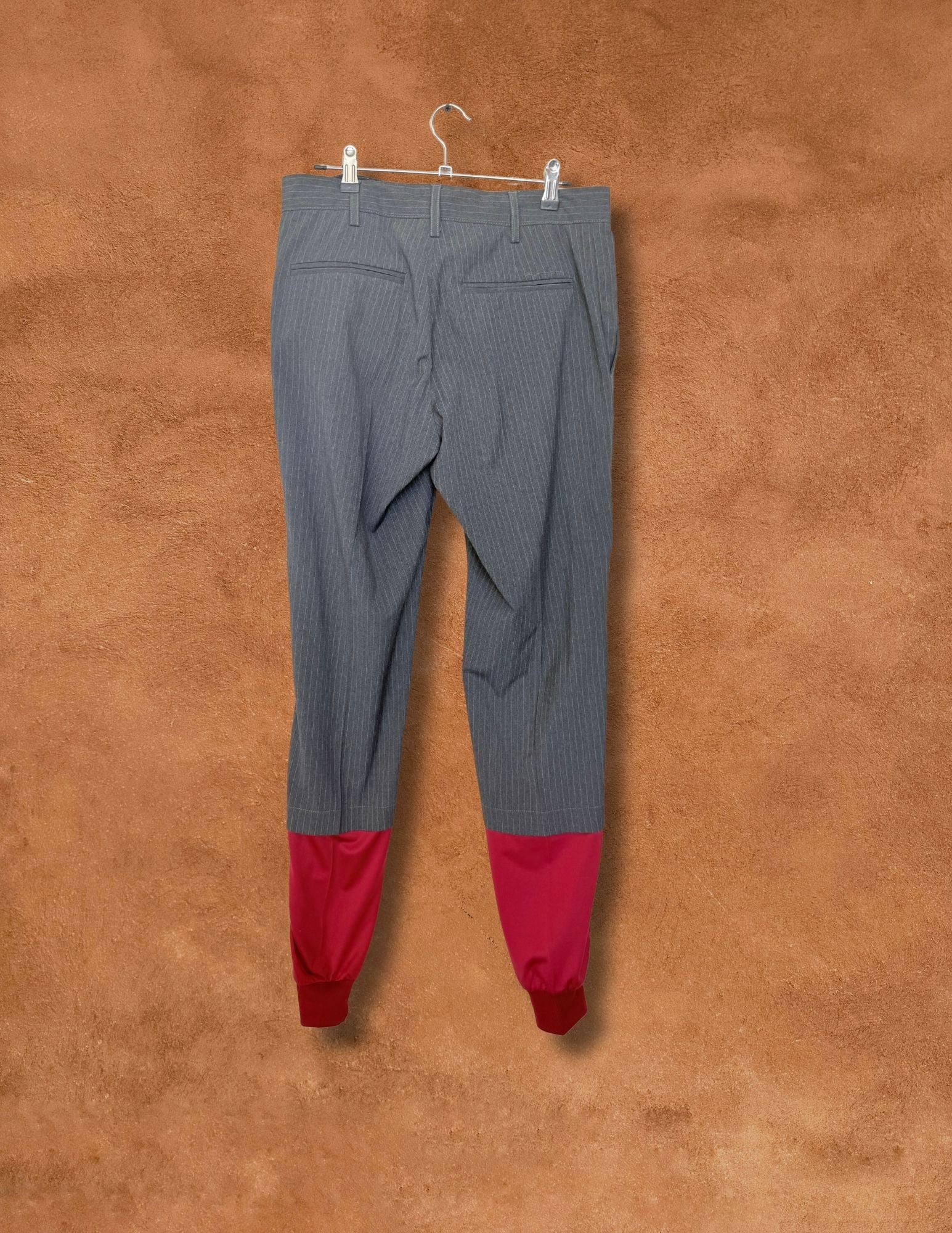 A statement from the 1990s that bridges formal suiting and streetwear. These menswear-inspired pinstripe trousers reimagine classic tailoring through a modern, athletic lens — blending structure with movement.