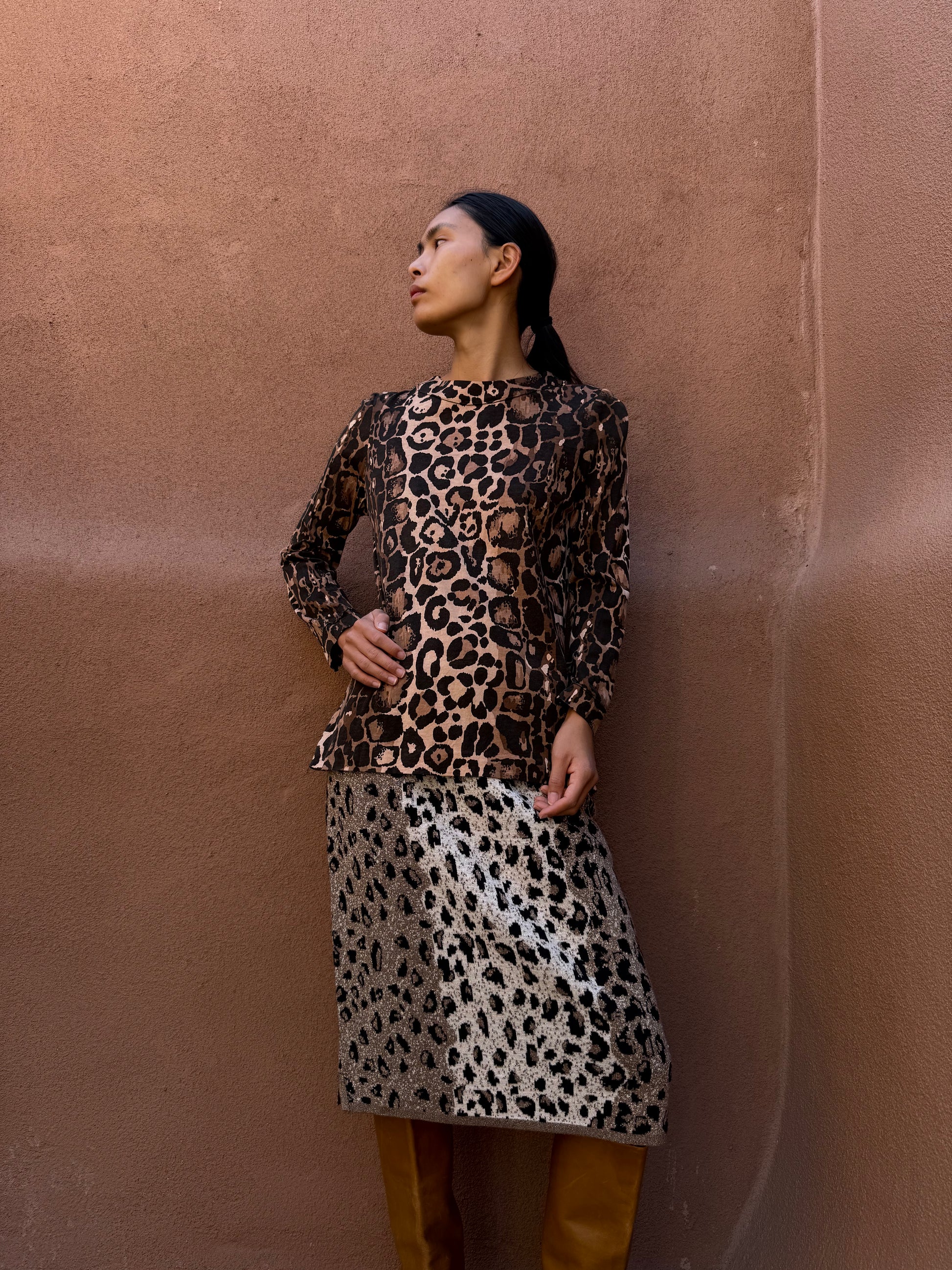 Stunning little animal-print jersey by Anne Klein—an epic piece straight out of the 80s. Crafted in a soft cotton/rayon blend, it features an invisible zipper at the back neck and that timeless Anne Klein sophistication with a bold vintage edge.