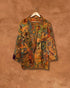 This stunning one-of-a-kind jacket features a traditional Indonesian batik pattern, recolorized and reborn under new light. Hand-dyed in rich, earthy tones of copper, jade, indigo, and gold, it carries the depth and artistry of centuries-old textile tradition — now reimagined as modern artwear.
