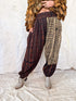 These harem pants feature a bold fusion of cotton ikat and African mudcloth, showcasing Adzer’s signature celebration of global textiles. Designed with an oversized, voluminous fit and cuffed hem, they move with fluidity and intention. The elastic waist provides comfort, while the generous cut offers dramatic shape and ease.
