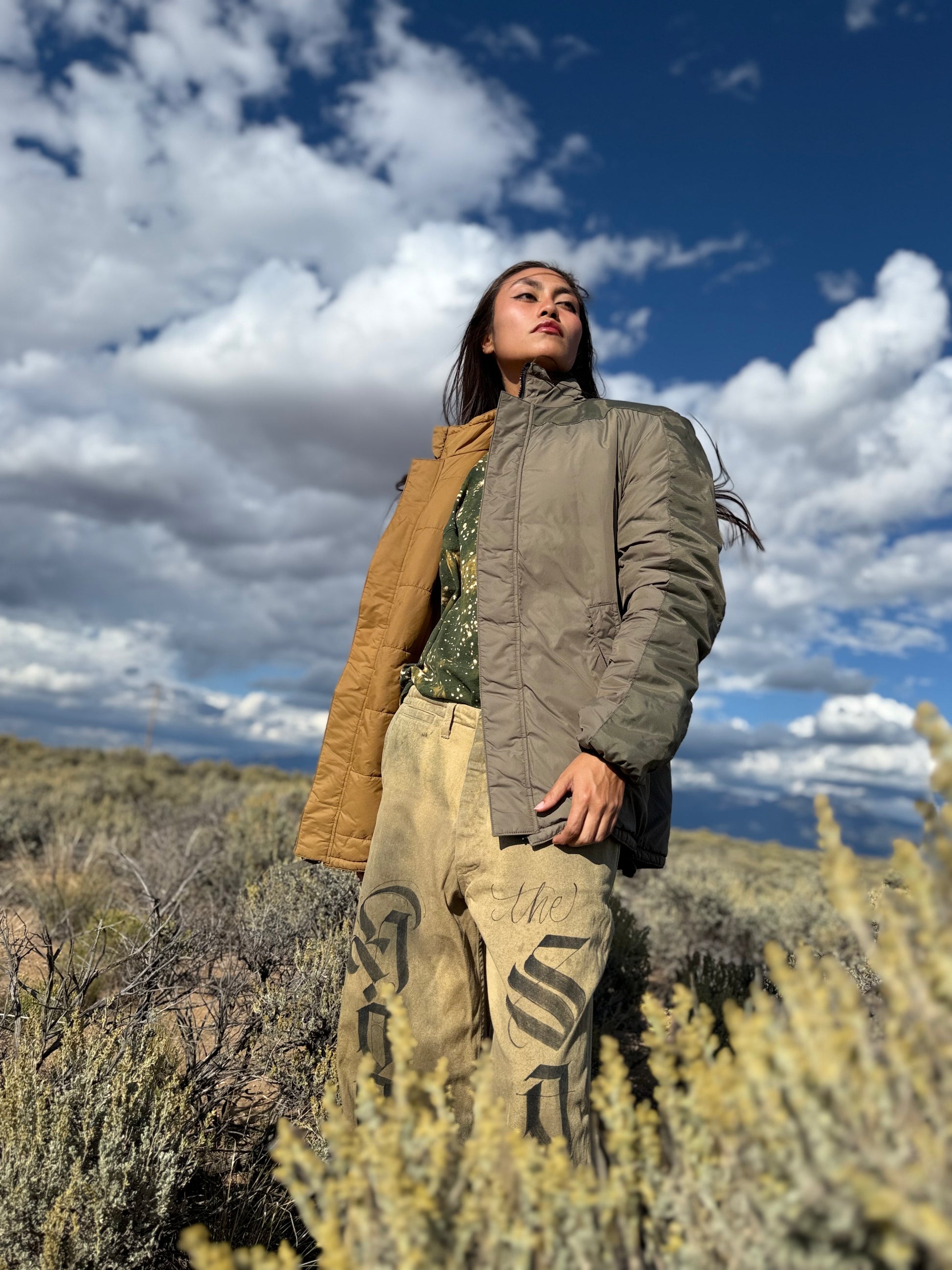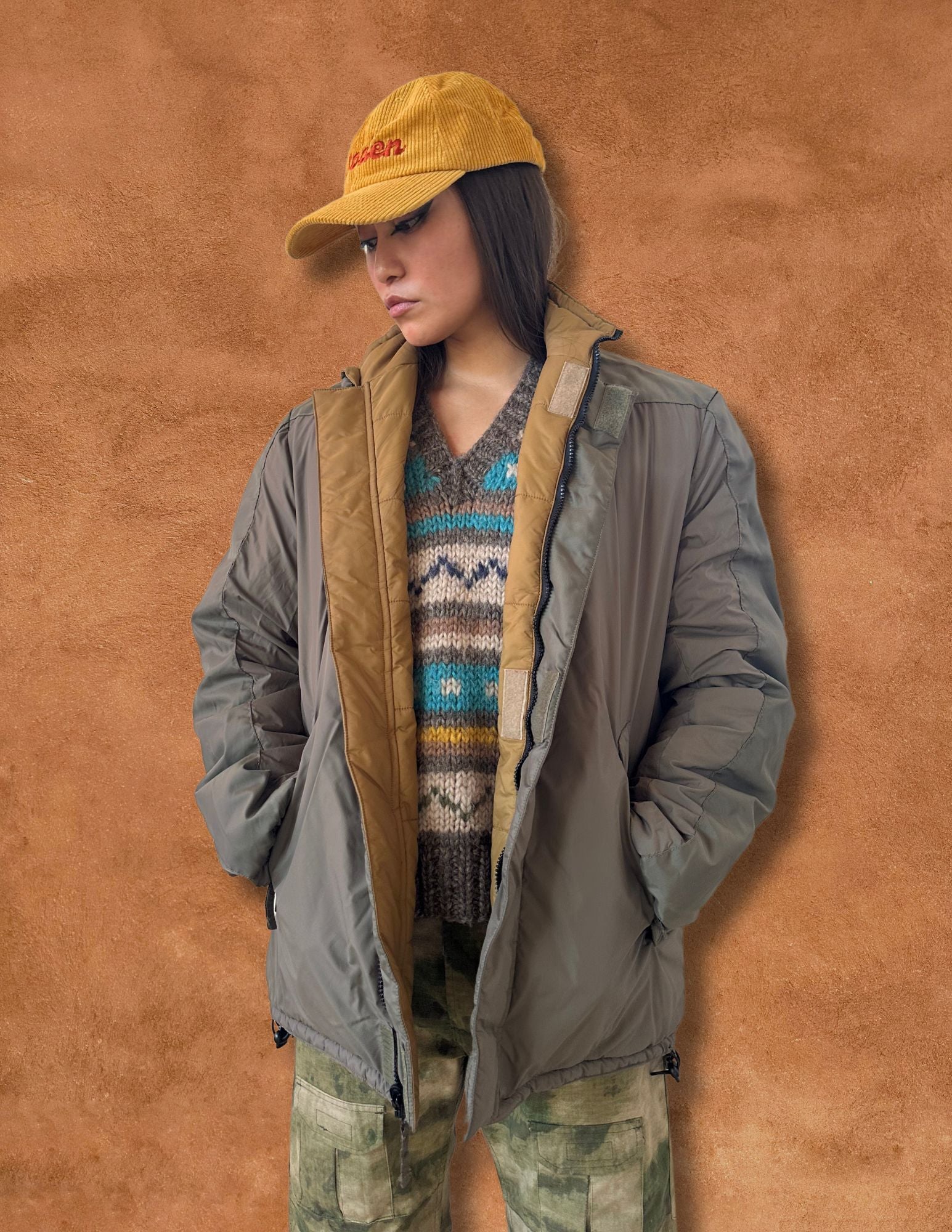 Vintage Nylon Quilted Belgian Puffer Military Jacket.